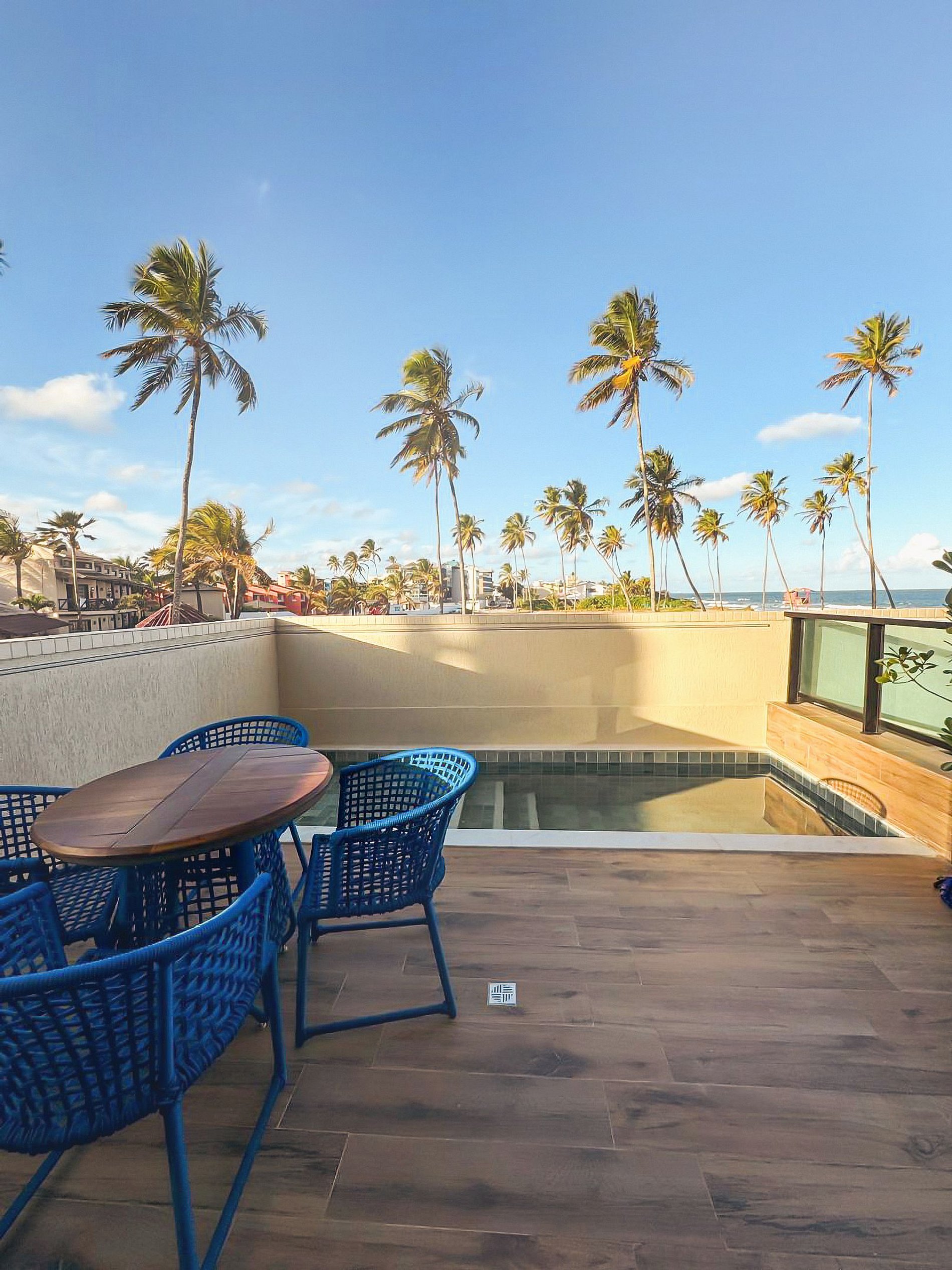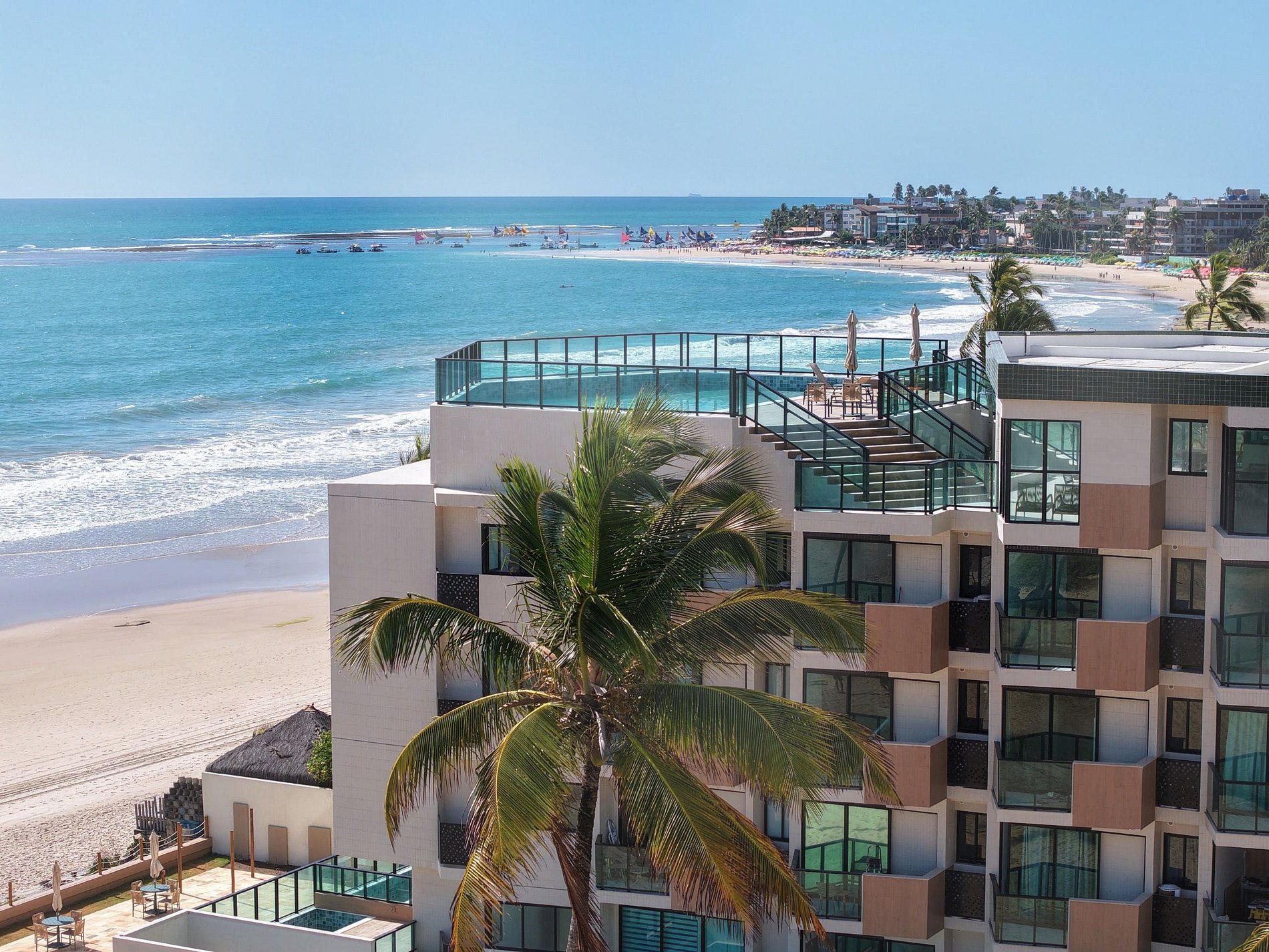 Apartamento de luxo à beira-mar e vista mar com piscina privativa em Porto de Galinhas. Equipado com móveis de alto padrão, duas TVs de 30", cama box premium e sofá-cama queen, oferece uma estadia elegante e confortável. Localizado a apenas poucos minutos do centrinho da vila e dos melhores restaurantes da região, o apartamento dispõe de estacionamento gratuito e fácil acesso, a 49 km do Aeroporto Internacional de Recife.