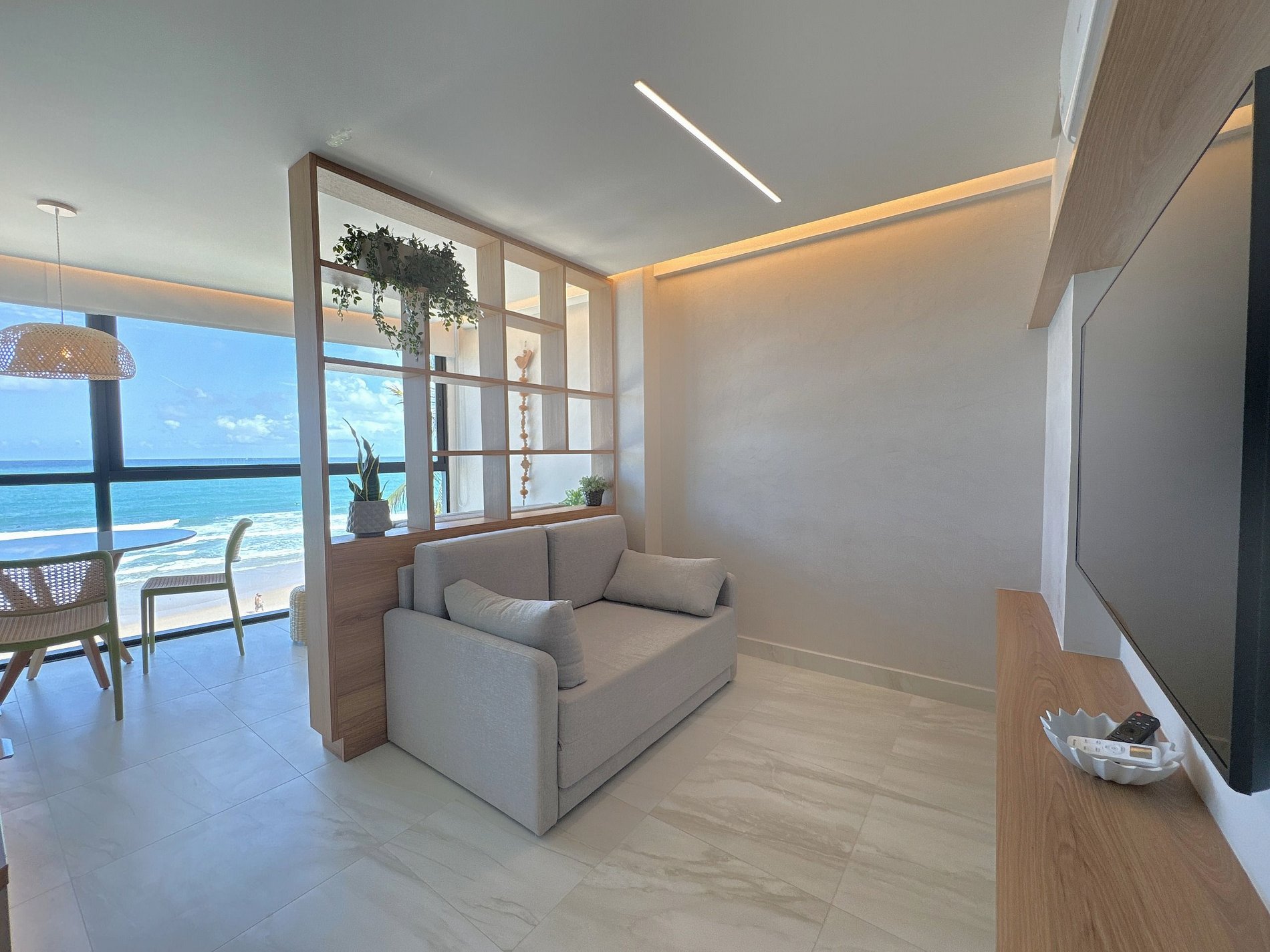 Apartamento de luxo à beira-mar, em Porto de Galinhas. Equipado com móveis de alto padrão, duas TVs de 32", cama box premium e sofá-cama queen, oferece uma estadia elegante e confortável. Localizado a poucos minutyos da Rua das Sombrinhas e dos melhores restaurantes da região, o apartamento dispõe de estacionamento gratuito e fácil acesso, a 49 km do Aeroporto Internacional de Recife.
